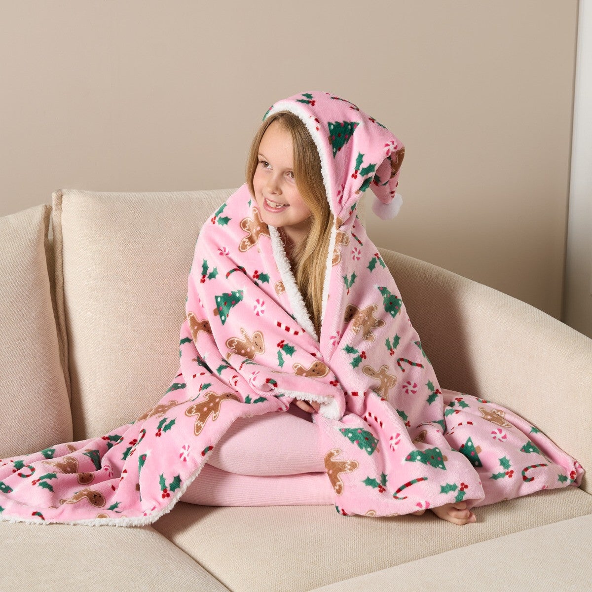 *PRE-ORDER* Kids Gingerbread Man Hooded Blanket - Pink