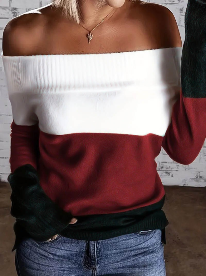 *PRE-ORDER* Off The Shoulders Long Sleeve Block Striped Knit Jumper